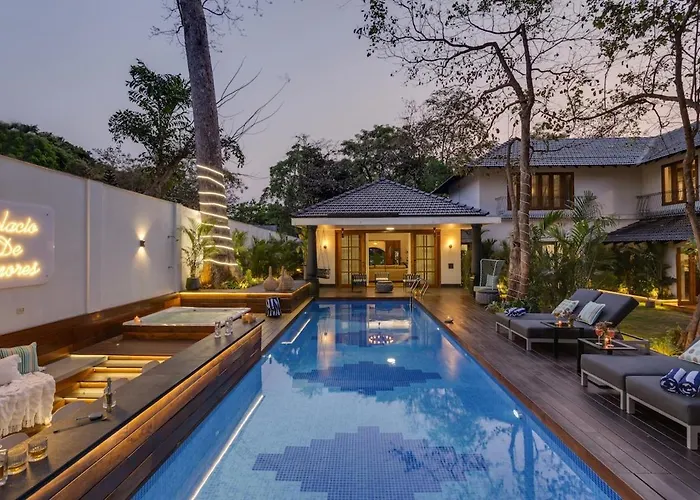Die Palacio De Amores 6Bhk Villa Pomburpa liegt in etwa 6 km Entfernung von der Kirche Mariä Empfängnis und verfügt über einen Swimmingpool mit einem Jacuzzi und einem Whirlpool. Diese Villa in Pomburpa befindet sich circa 15 Minuten mit dem Auto von der Panaji-Brücke entfernt und verfügt über eine Terrasse.